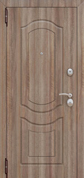 Фото «Металлическая дверь венге с квадратными филёнками и центральной планкой №360»